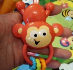 Все висячие игрушки выполнены разными на ощупь - одна шуршит, одна мнется, одна имеет крутящиеся элементы, одна твердая и округлая и т.д.
