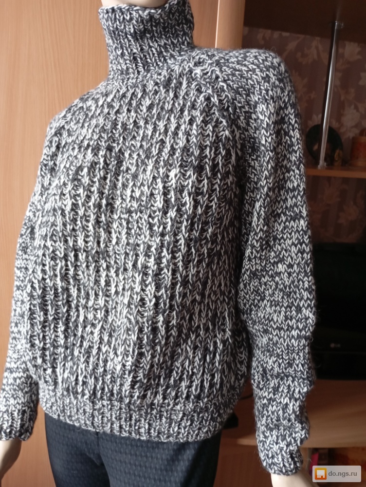 Свитер связан патентной резинкой, а рукава лицевой гладью.