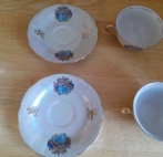 Чашки выполнены с деликатным позолоченным обрамлением, что придаёт комплекту роскошный вид.