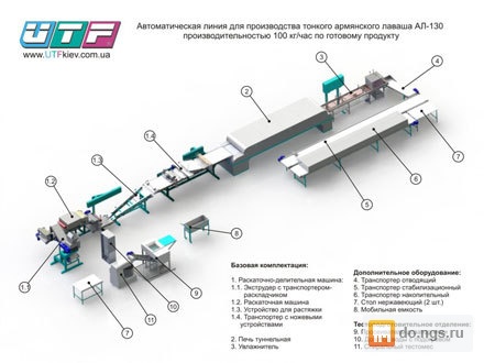 1 Линия для производства лаваша АЛ 130 25 000 лав./смена (в 100 гр. лавашах) не более 80 кВт 21000*2500*1850 мм